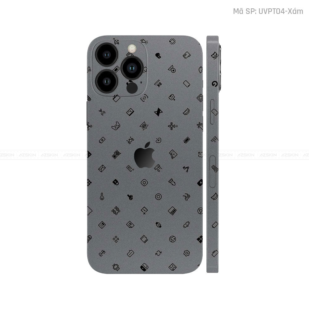 Dán Skin IPhone 14 Series Vân Pattern ICON Xám | UVPT04