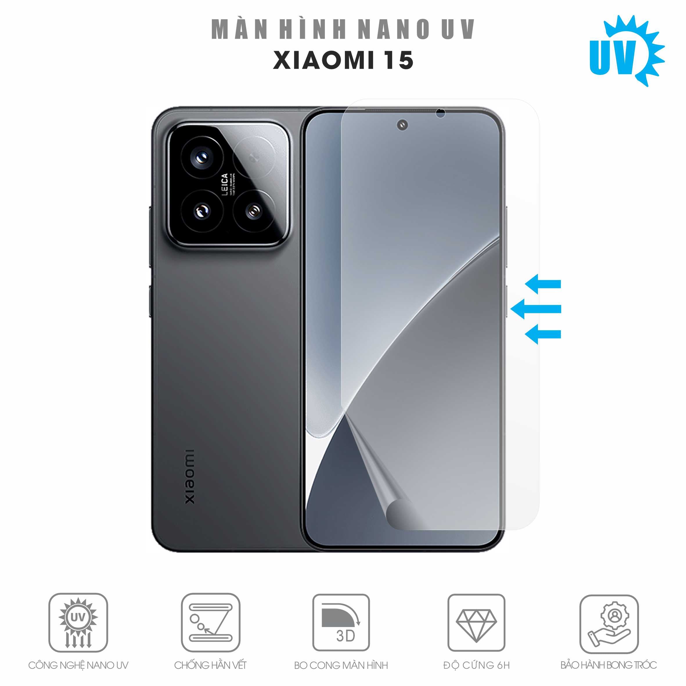 Miếng dán màn hình Xiaomi 15 | Pro | Ultra | 15T | 15T Pro Nano UV - dán cường lực full màn hình công nghệ mới bảo vệ vượt trội hơn. Film PPF cao cấp kết hợp UV tạo ra lớp kính mỏng với độ cứng 6H mang đến khả năng chống trầy xước vỡ va đập tốt hơn nhưng vẫn đảm bảo độ mỏng nhẹ độ nhạy cảm ứng.