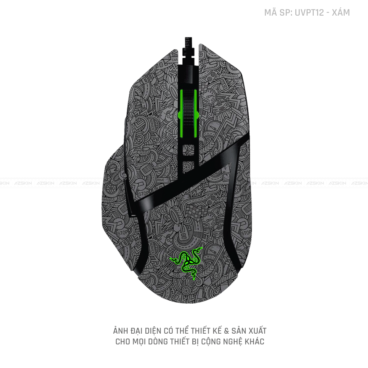 Skin Dán Chuột Razer Vân Nổi Hình PATTERN CARTOON Xám | UVPT12