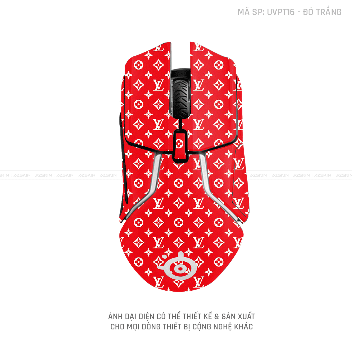 Skin Dán Chuột Steelseries Vân Nổi Vân LV Đỏ Trắng | UVPT16